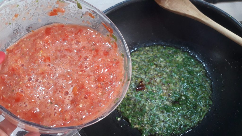 Faites revenir pendant 2 minutes puis…Versez les tomates cerises hachées,