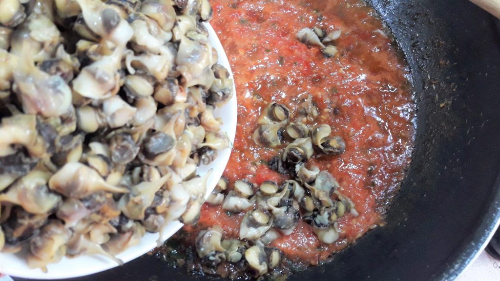 Préparation des Spaghettis aux Bulots ou escargots de mer