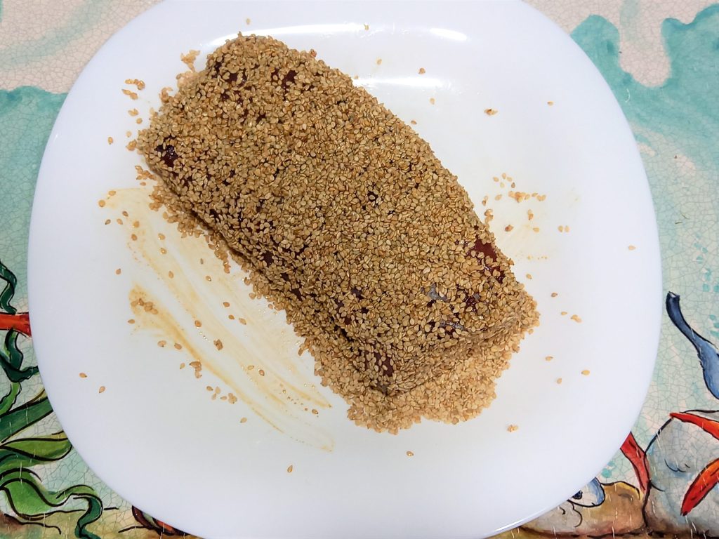 Nous avons fait le Tataki de thon teriyaki et sésame, préparé avec le Bimby.