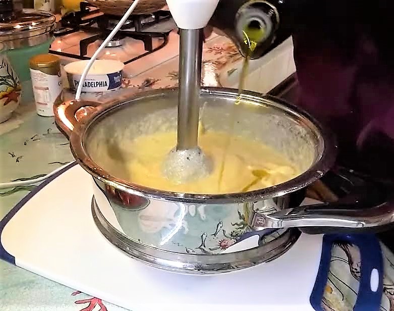Mixez en ajoutant l’huile d’olive extra vierge que vous avez.
