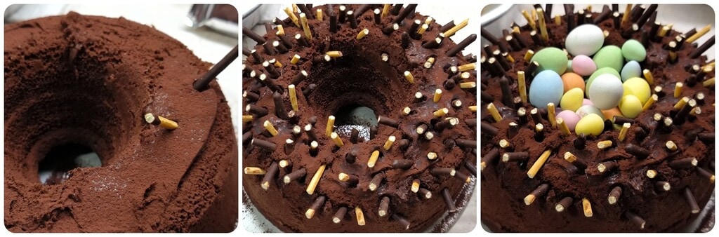 Gâteau nid au chocolat recette de Pâques, gourmand et joli à voir à apporter à table le jour de Pâques. En réalité, c’est un simple mais gourmand gâteau au chocolat habillé pour la fête et transformé en nid avec des bâtons de chocolat et des petits œufs. Si vous l’emballez ensuite avec du papier transparent et un joli nœud coloré, c’est magnifique aussi à offrir à la place de l’œuf de Pâques habituel. Essayez de le faire et je suis sûre qu’il plaira beaucoup à vos invités. Mais voyons ensemble ce dont nous avons besoin et comment faire le gâteau nid au chocolat.