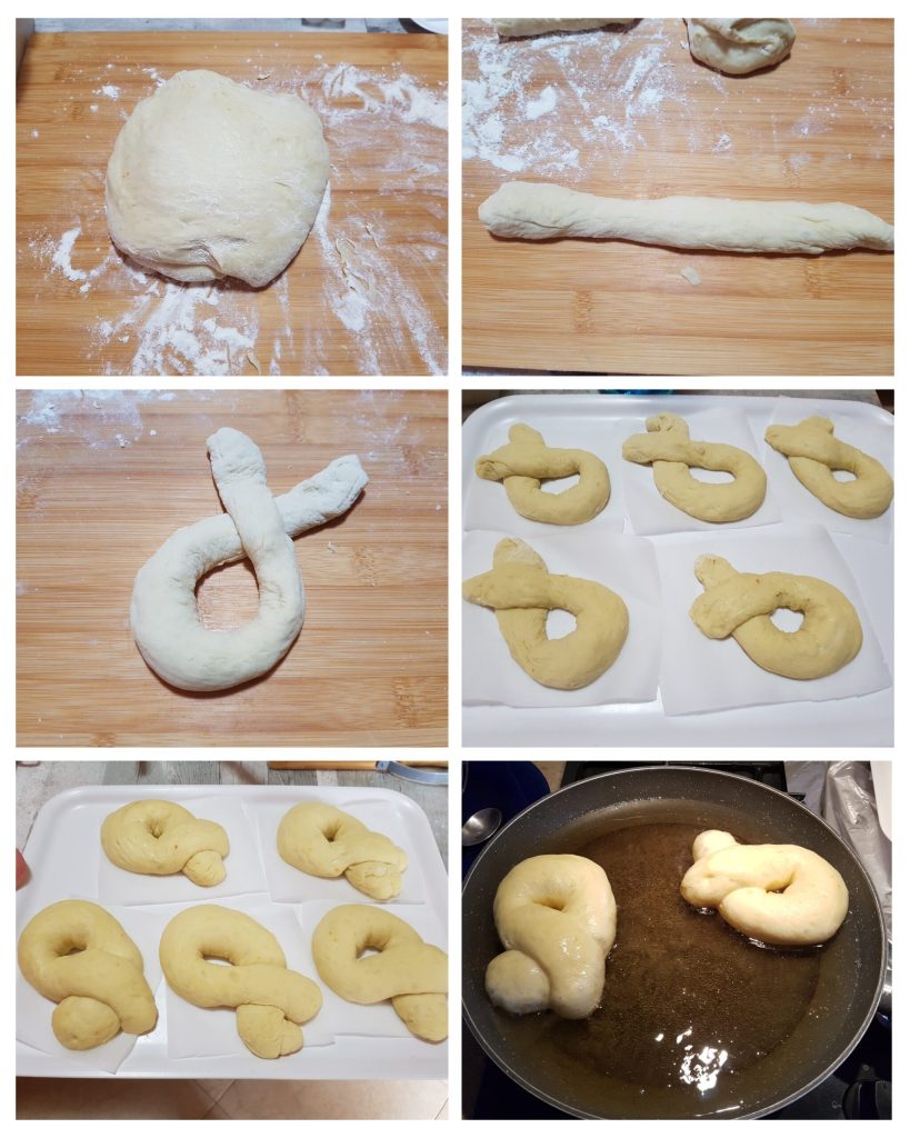 Une fois la pâte levée, la renverser sur un plan de travail fariné et la diviser en petites boules de 80 g chacune. Former un cordon long et unir les extrémités pour obtenir la forme classique de beignet. Continuer ainsi avec le reste de la pâte. Déposer tous les beignets sur une plaque recouverte de papier cuisson et laisser lever encore pendant 1 heure ou jusqu’à ce qu’ils doublent de volume. Une fois levés, faire frire les beignets dans de l’huile d’arachide chaude à une température de 170°. Égoutter sur un plateau recouvert de papier absorbant et les passer immédiatement dans le sucre semoule.