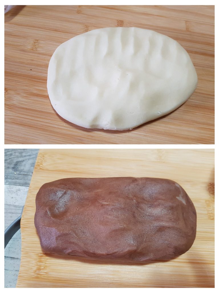 • Pour réaliser les cannes de Noël, il suffit de créer des cordons sombres au cacao et d’autres blancs, de les assembler, de presser légèrement et de commencer à les enrouler en spirale pour former une canne de sucre.