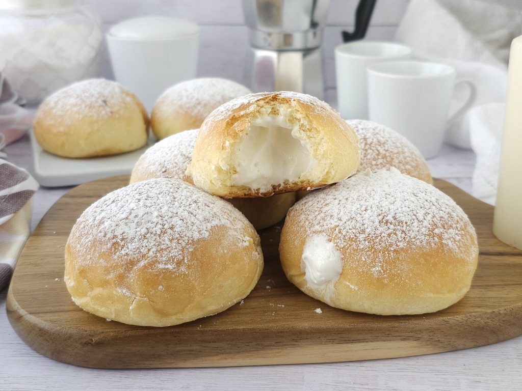 Salut les amis, aujourd’hui je vous propose de délicieuses brioches farcies avec de la crème au lait à déguster pour le goûter ou le petit-déjeuner. Très simples à réaliser mais tellement gourmandes et moelleuses. Pâte à brioche farcie avec une crème au lait et à la crème qui fait saliver rien qu’en l’écrivant. Vous trouverez ci-dessous la recette..