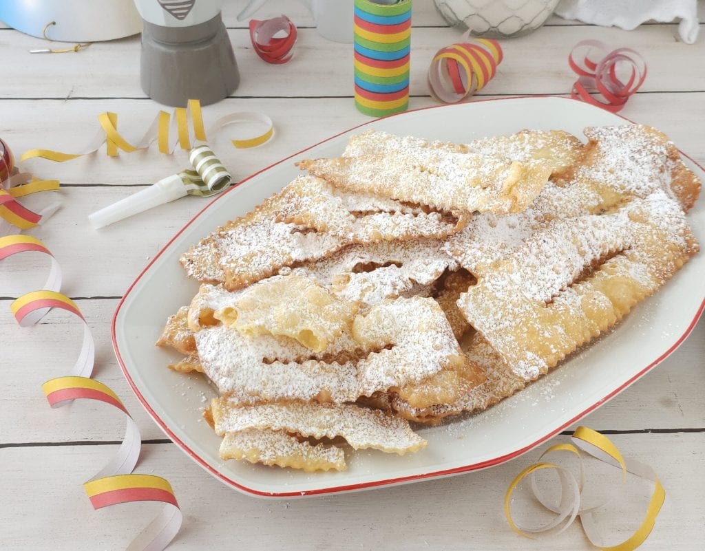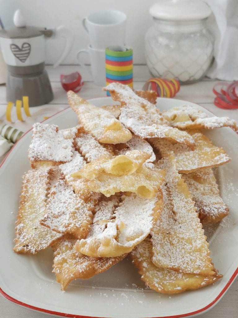 • Enfin, lorsqu’elles seront froides, saupoudrer de sucre glace et servir. Voilà les chiacchiere prêtes, recette infaillible. J’espère que ma dernière recette vous plaira, à la prochaine les amis.