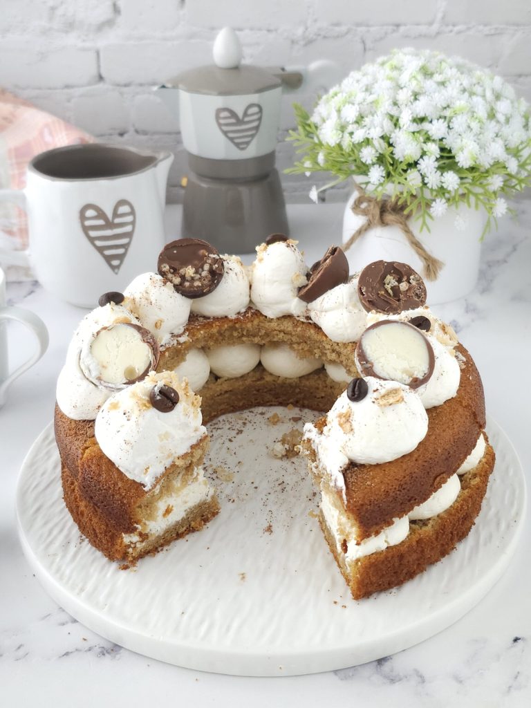 Bonjour les amis, je vous propose aujourd’hui cette merveilleuse cream tart moelleuse au café et mascarpone, idéale pour toute occasion spéciale comme un anniversaire ou pour les fêtes. C’est simplement un gâteau composé de deux couches superposées — ici une pâte moelleuse et non une pâte sablée — garni de pointes de crème, dans mon cas mascarpone et crème, et enfin décoré d’éléments créatifs comme des chocolats, des macarons, des fleurs comestibles ou tout simplement des fruits frais. Vous trouverez la recette ci-dessous.