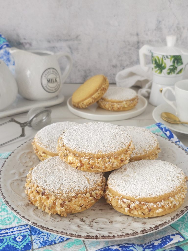 Bonjour les amis, aujourd’hui je vous propose ces fabuleuses délicieuses napolitaines, biscuits typiques de Campanie farcis, dans ce cas, de crème pâtissière plus crème au beurre vraiment délicieuses. C’est un dessert composé de deux disques de pâte sablée friable, farcis d’une parfumée crème mousseline et les bords recouverts d’un croquant de noisettes. Il en existe dans le commerce avec de nombreux fourrages délicieux (crème au chocolat, crème de pistache, crème au beurre aromatisée). Ces petits gâteaux ne peuvent pas manquer dans le plateau de pâtisseries dominicales à Naples. Ci-dessous vous trouverez la recette..