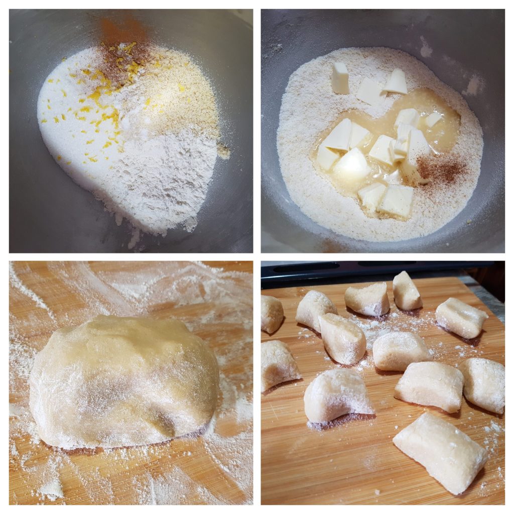 • Pour réaliser les fèves des morts, il faut mélanger dans un bol tous les ingrédients ensemble en commençant par mélanger le sucre et la farine d’amande avec les épices, le sel et les arômes. Ajouter le beurre mou et l’œuf et bien amalgamer jusqu’à obtenir une pâte molle et collante. Saupoudrer le plan de travail de farine et y déposer la pâte. Former des boudins et couper en morceaux à l’aide d’un couteau. Une fois prêts, disposer les morceaux de pâte sur une plaque recouverte de papier sulfurisé et cuire dans un four chaud statique à 170°C pendant 15 minutes. Pendant la cuisson, ils s’aplatissent et s’élargissent. Si vous le souhaitez, vous pouvez également leur donner une forme ronde. Sortir les biscuits du four et les laisser refroidir complètement.