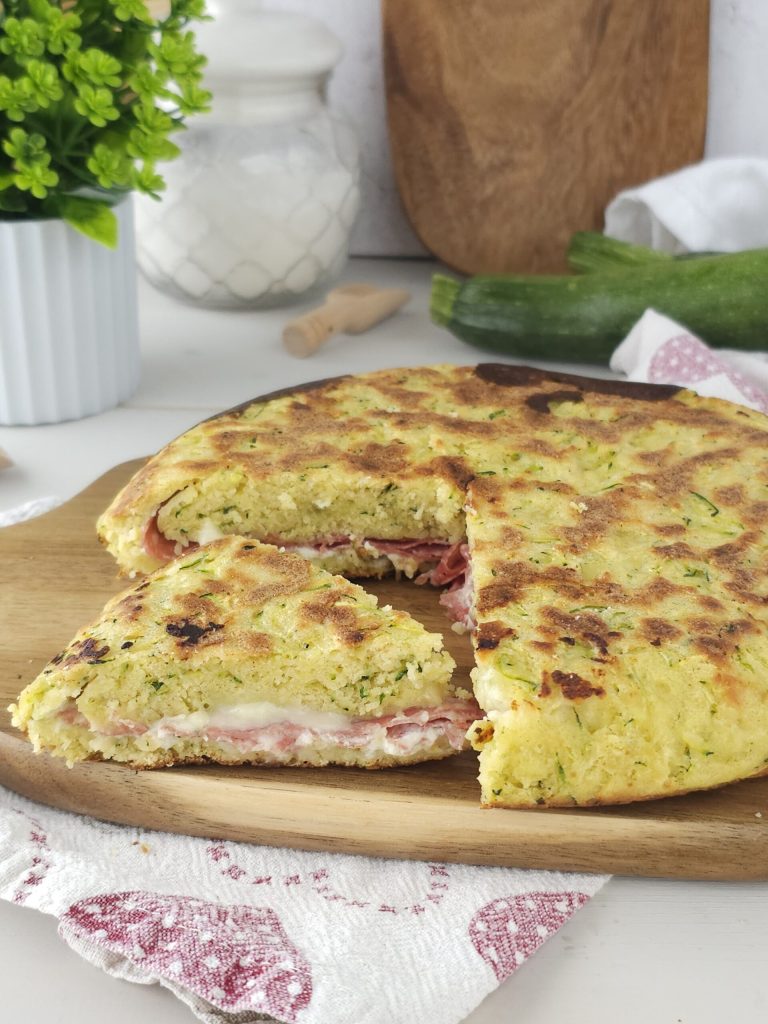 Bonjour mes amis, aujourd’hui je vous propose cette délicieuse et rapide focaccia de courgettes farcie cuite à la poêle en 20 minutes. Une recette insolite mais savoureuse, un vrai buzz sur les réseaux sociaux. La cuisson à la poêle rend cette recette salée extrêmement rapide. J’ai voulu l’essayer dans cette version avec une farce de salami, fromage à tartiner et tranche de fromage, mais vous pouvez opter pour d’autres farces à votre goût. Vous trouverez la recette ci-dessous..