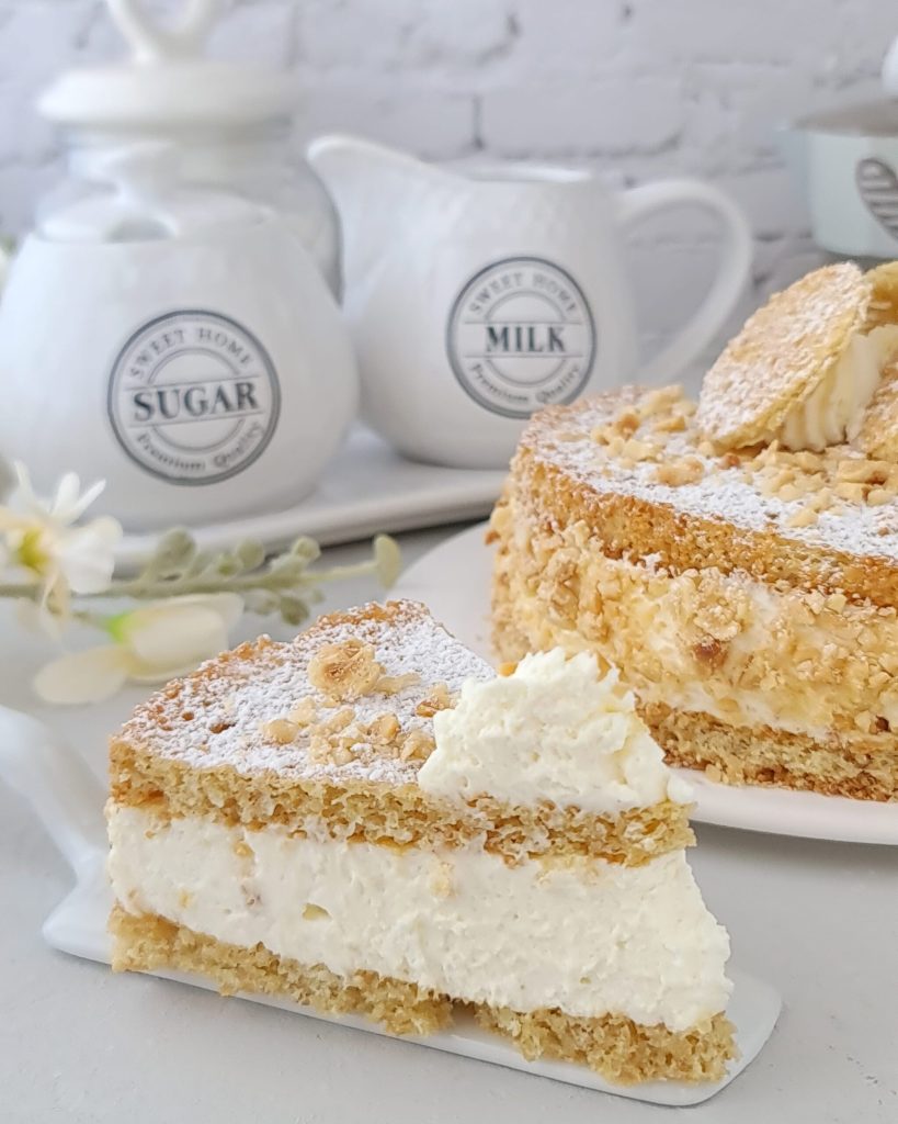 Bonjour les amis, aujourd’hui je vous propose ce merveilleux gâteau aux noisettes garni d’une crème super gourmande à la crème, mascarpone et lait concentré. Vous trouverez ci-dessous la recette…