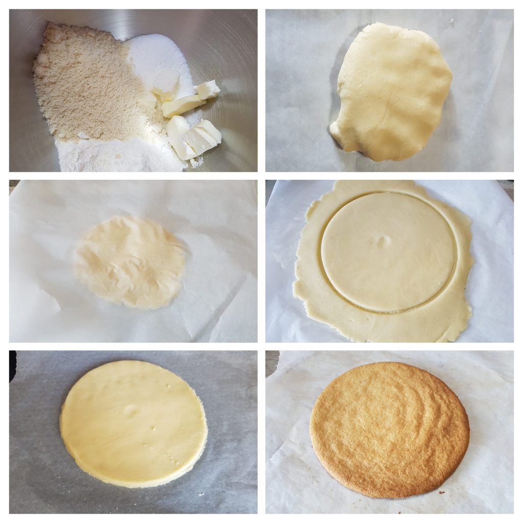 Pour réaliser ce délicieux gâteau glacé semifreddo kinder bueno, il faut d’abord préparer le biscuit streusel à l’avance. Disposer dans le robot pâtissier muni du fouet k (ou tout autre robot culinaire muni de lames) tous les ingrédients et pétrir jusqu’à ce qu’ils soient bien mélangés pour former une pâte. Ou à la main, verser tous les ingrédients dans un bol et pétrir rapidement jusqu’à obtenir une pâte homogène. Former une boule et étaler une pâte avec un rouleau à pâtisserie entre deux feuilles de papier cuisson jusqu’à obtenir une épaisseur de 3 mm. Mettre le streusel au réfrigérateur pour 30 minutes pour raffermir. Passé le temps indiqué, découper avec un anneau en acier de 20 cm et placer le disque sur une plaque recouverte de papier cuisson. Cuire au four statique à 170° pendant 13-15 minutes. Éteindre, sortir et laisser refroidir.