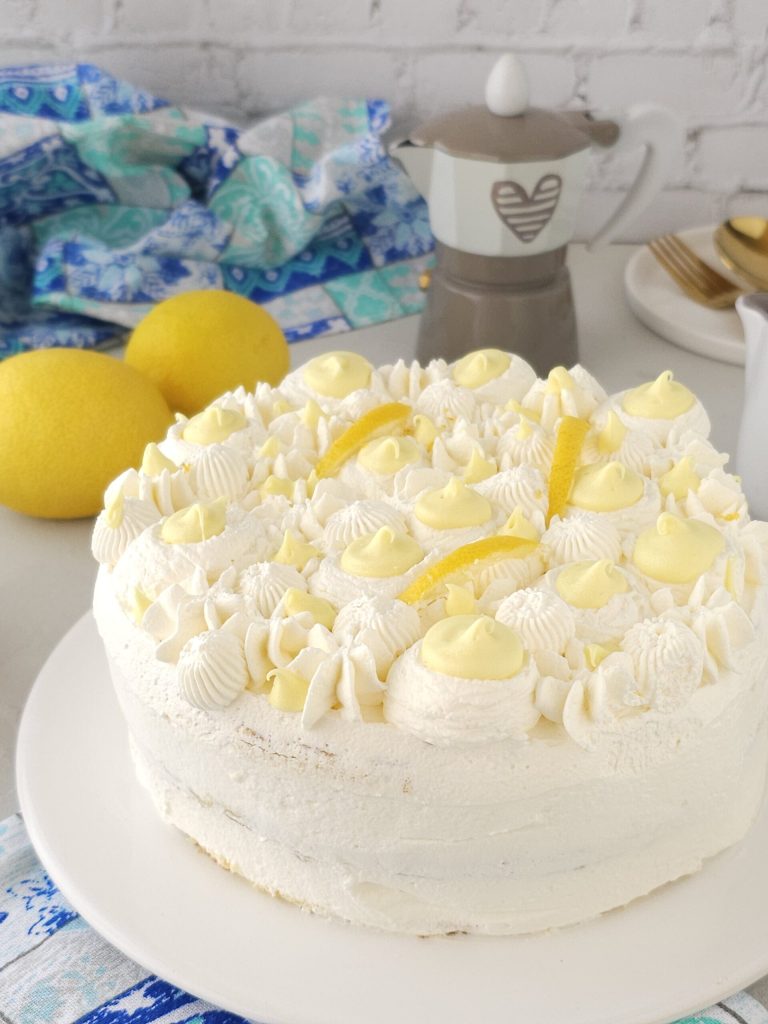 Déposer le premier disque de génoise sur un plat de service et garnir d’une couche de mousse au yaourt. Placer au centre de la mousse au yaourt une couche de lemon curd préparée à l’avance avec la recette indiquée dans les ingrédients. Procéder avec le second disque de génoise, verser plus de mousse au yaourt et une autre couche de lemon curd et enfin déposer le dernier disque de génoise. Recouvrir tout le gâteau avec le reste de mousse au yaourt et mettre au frigo pour raffermir pendant 4 heures.