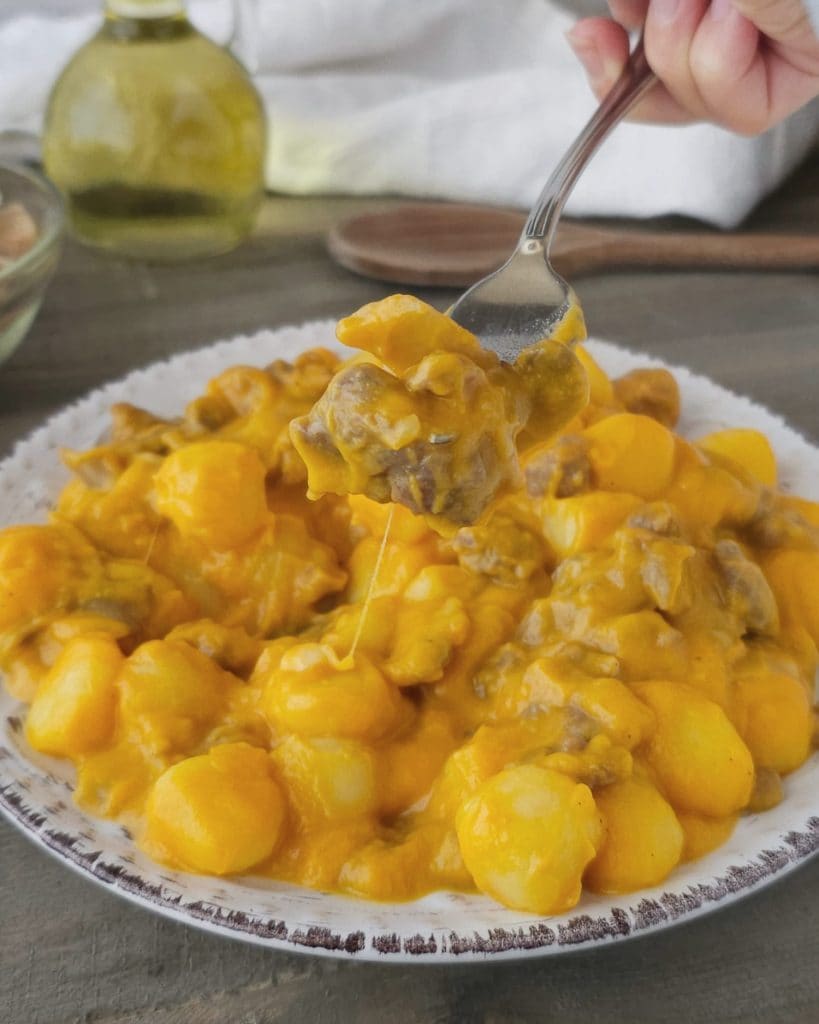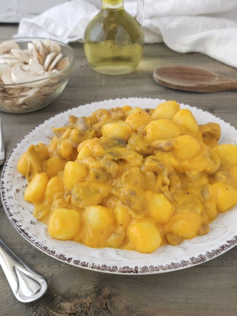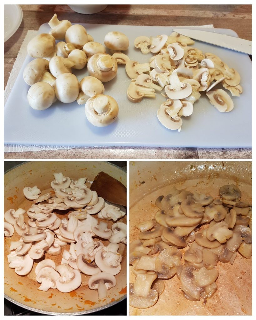 Étapes pour les gnocchis avec crème de potiron, saucisse et champignons
