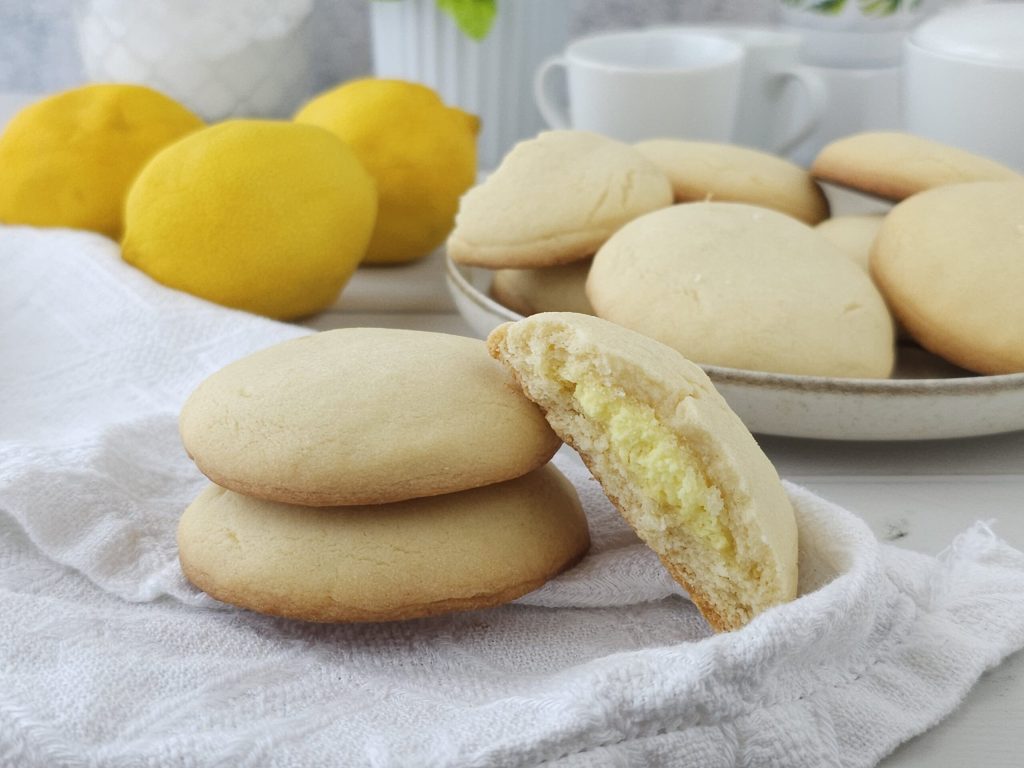 Reprendre la pâte sablée du frigo, fariner un plan de travail et étaler la pâte sablée à l’aide d’un rouleau à pâtisserie pour obtenir une abaisse d’environ 2-3 mm d’épaisseur. À l’aide d’un emporte-pièce rond de 6-7 cm, découper des disques de pâte sablée et déposer au centre une cuillère de crème tartinable au citron puis refermer avec un autre disque et bien sceller les bords avec les mains. Déposer chaque biscuit sur une plaque recouverte de papier cuisson et cuire dans un four chaud statique à 170° pendant 15-20 minutes. Sortir du four et laisser refroidir.