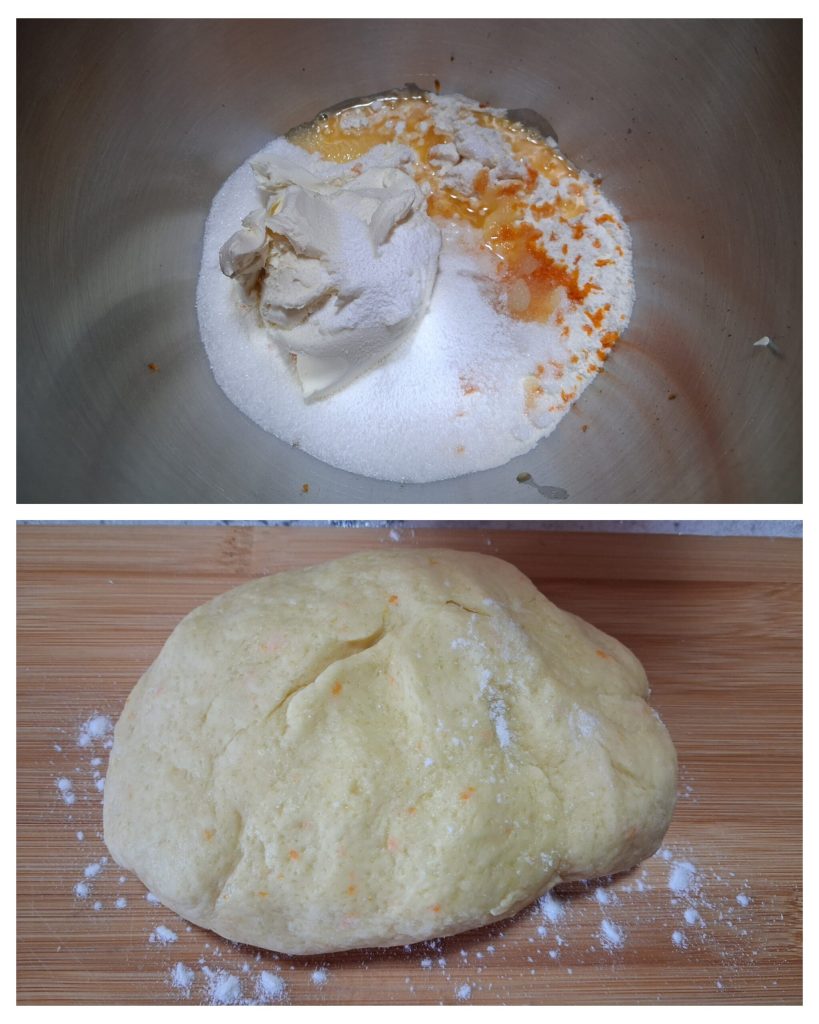 Pour préparer ces merveilleux raviolis, il faut préparer la pâte, vous pouvez la réaliser à la main dans un bol ou à l’aide d’un robot de cuisine. Dans le bol, verser la farine tamisée, le sucre en poudre, le mascarpone, le jus d’orange, le rhum, le sel, la levure chimique, le zeste d’orange râpé et mélanger à l’aide d’une cuillère pour bien amalgamer tous les ingrédients puis utiliser les mains. Enfin, ajouter l’œuf et continuer ainsi jusqu’à bien compacter la pâte en la travaillant sur le plan de travail. Laisser reposer la pâte couverte d’un torchon pendant 15 minutes.