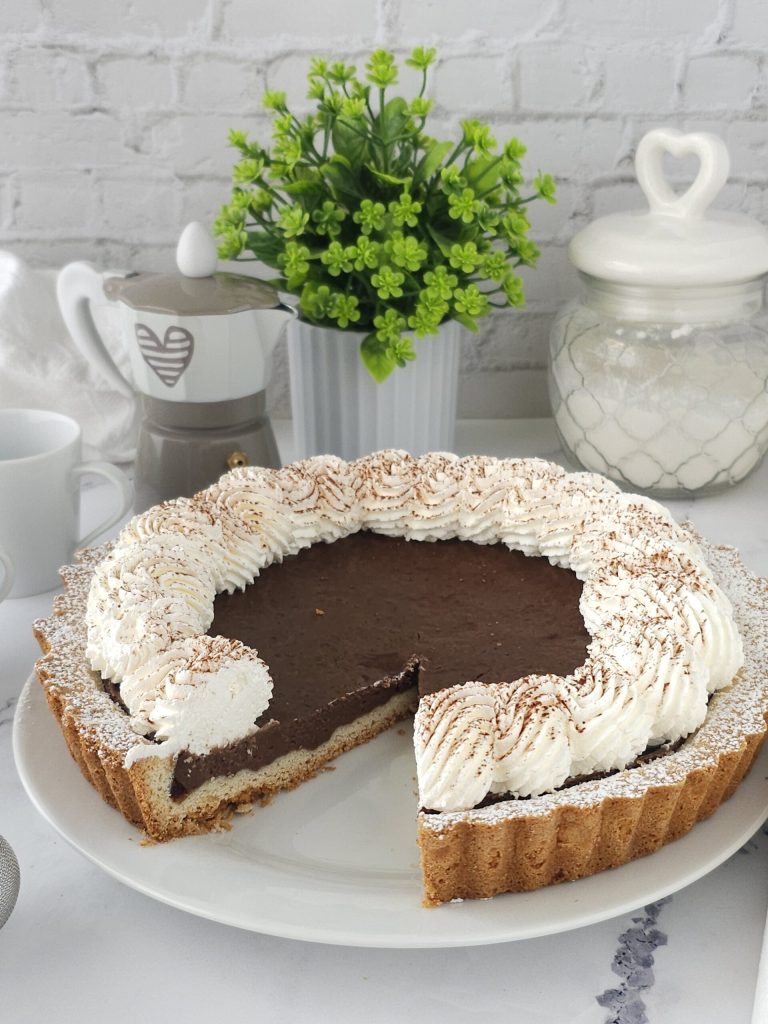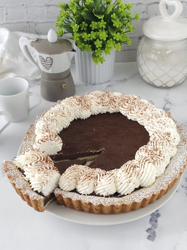 Bonjour les amis, aujourd’hui je vous propose cette délicieuse tarte avec crème au chocolat et chantilly à déguster en toute occasion. Très spectaculaire à amener sur les tables pour étonner vos convives. Vous trouverez ci-dessous la recette.