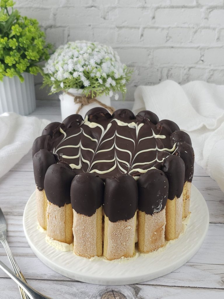 Bonjour les amis, je vous propose aujourd’hui cette délicieuse tarte charlotte à la crème diplomatique, très jolie et élégante grâce aux boudoirs glacés au chocolat qui ajoutent une note spectaculaire. Elle est super facile à préparer et surtout gourmande, idéale pour un déjeuner entre amis ou à servir lors d’une occasion spéciale. Vous trouverez la recette ci‑dessous..