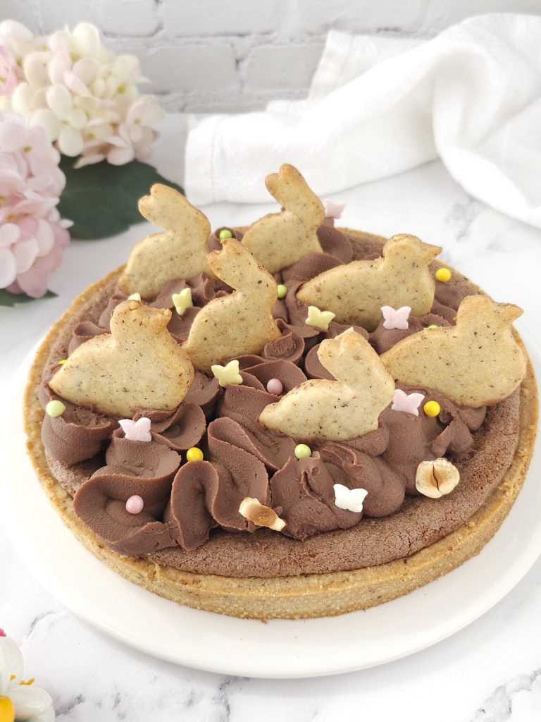 La tarte moderne de Pâques se conserve au réfrigérateur pour un maximum de deux jours. La pâte sablée peut être préparée à l’avance et donc même la veille. La ganache montée peut également être préparée la veille.