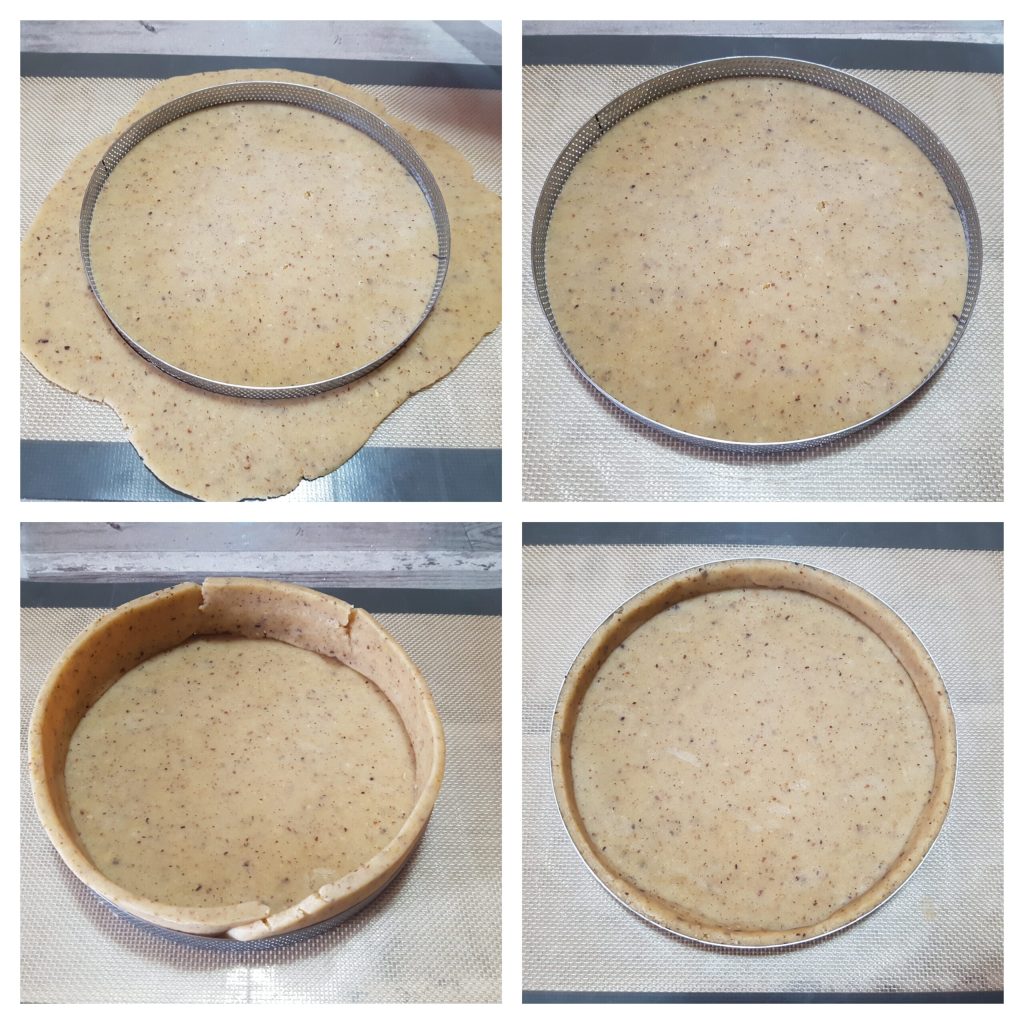 • Pour réaliser cette merveilleuse tarte moderne, il faut d’abord préparer à l’avance la pâte sablée aux noisettes. Commencez par sortir le beurre du réfrigérateur pour le rendre plastique, c’est-à-dire le laisser atteindre une température de 15 degrés, il doit être mou. Dans le bol du robot pâtissier et en utilisant un crochet feuille, travailler le beurre avec l’essence de vanille et le sucre glace, pour obtenir une crème homogène. Ajouter le sel et la farine d’amandes et continuer à mélanger. Ensuite, verser l’œuf préalablement battu avec une fourchette et enfin ajouter la farine 00 et continuer à pétrir jusqu’à obtenir une pâte homogène. Bien sûr, ceux qui ne possèdent pas de robot pâtissier peuvent réaliser cette simple pâte sablée à la main, dans un bol.
