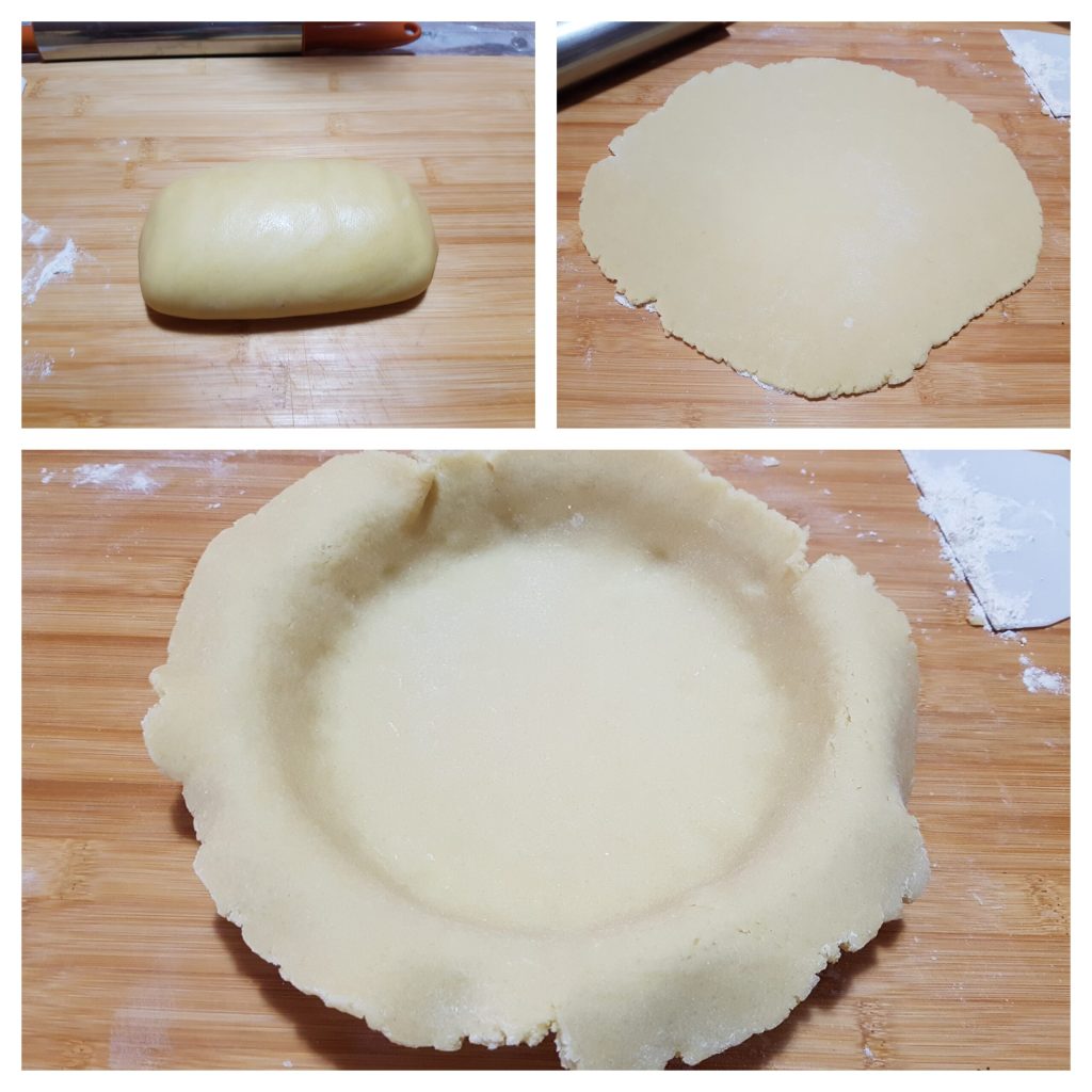 • Pour réaliser cette tarte tiramisù, il faut d’abord préparer la pâte sablée. Vous pouvez pétrir la pâte sablée dans n’importe quel robot de cuisine, moi par commodité j’ai utilisé le robot pâtissier. Commencez par mettre le fouet feuille, c’est-à-dire le (K), dans le bol du robot ajoutez le beurre froid en morceaux avec le sucre, la farine tamisée avec la pincée de sel, la levure, la vanille et mettez la machine en marche à vitesse 2 pendant quelques minutes. Ajoutez ensuite l’œuf et mélangez encore pendant quelques minutes jusqu’à obtenir une pâte lisse et homogène. Si nécessaire, ajoutez un peu de lait. Compactez bien la pâte sablée et enveloppez-la dans un film alimentaire, mettez-la à reposer au réfrigérateur pendant environ une heure. Vous pouvez très bien préparer la pâte sablée la veille. Sortez la pâte sablée du réfrigérateur et divisez-la en deux, puis étalez-la avec un rouleau à pâtisserie sur une épaisseur de 3 mm. Tapissez un moule à tarte de 24 cm avec la pâte sablée préalablement beurrée et farinée et mettez de côté.