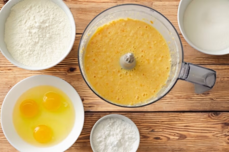 Pour préparer le Pan d’Arancio, commencez ainsi : lavez, séchez et coupez les oranges en quartiers puis en morceaux, sans retirer la peau. Éliminez les pépins et mettez-les dans un mixeur avec l’huile et le lait. Mixez jusqu’à obtenir un mélange homogène. Ajoutez les œufs, le sucre et la farine tamisée avec la fécule. Mixez à nouveau mais pas trop.
