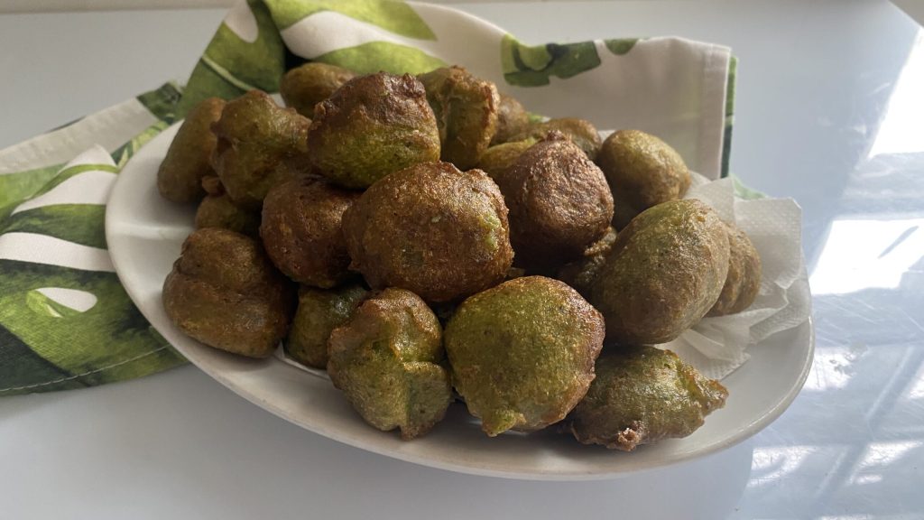 Une fois prête, formez des petites boules et faites-les frire dans une grande quantité d’huile chaude jusqu’à ce qu’elles soient dorées.