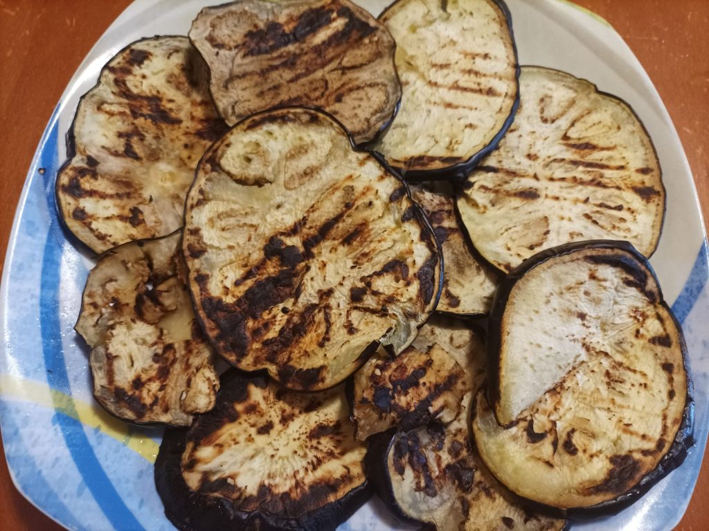 Dans un gril ou une poêle antiadhésive, grillez les aubergines.