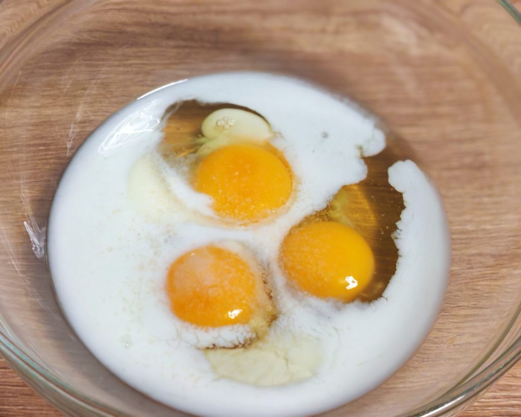 Commencez par assaisonner les œufs avec le lait et le sel, battez bien.