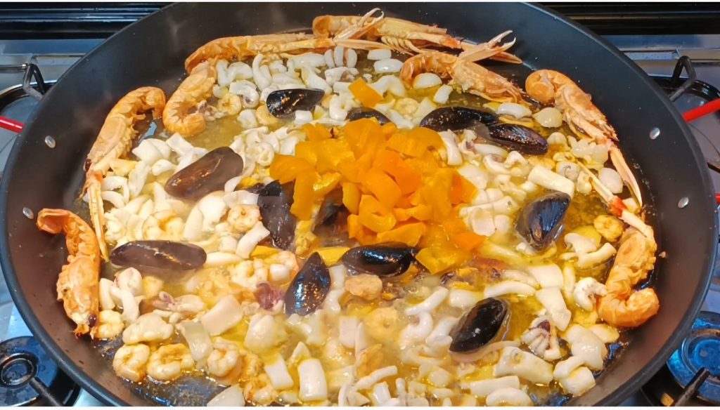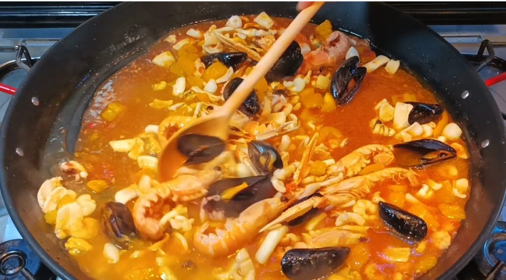 La paella aux fruits de mer est prête!