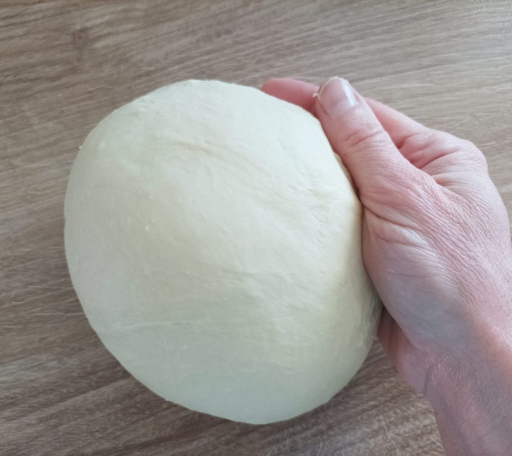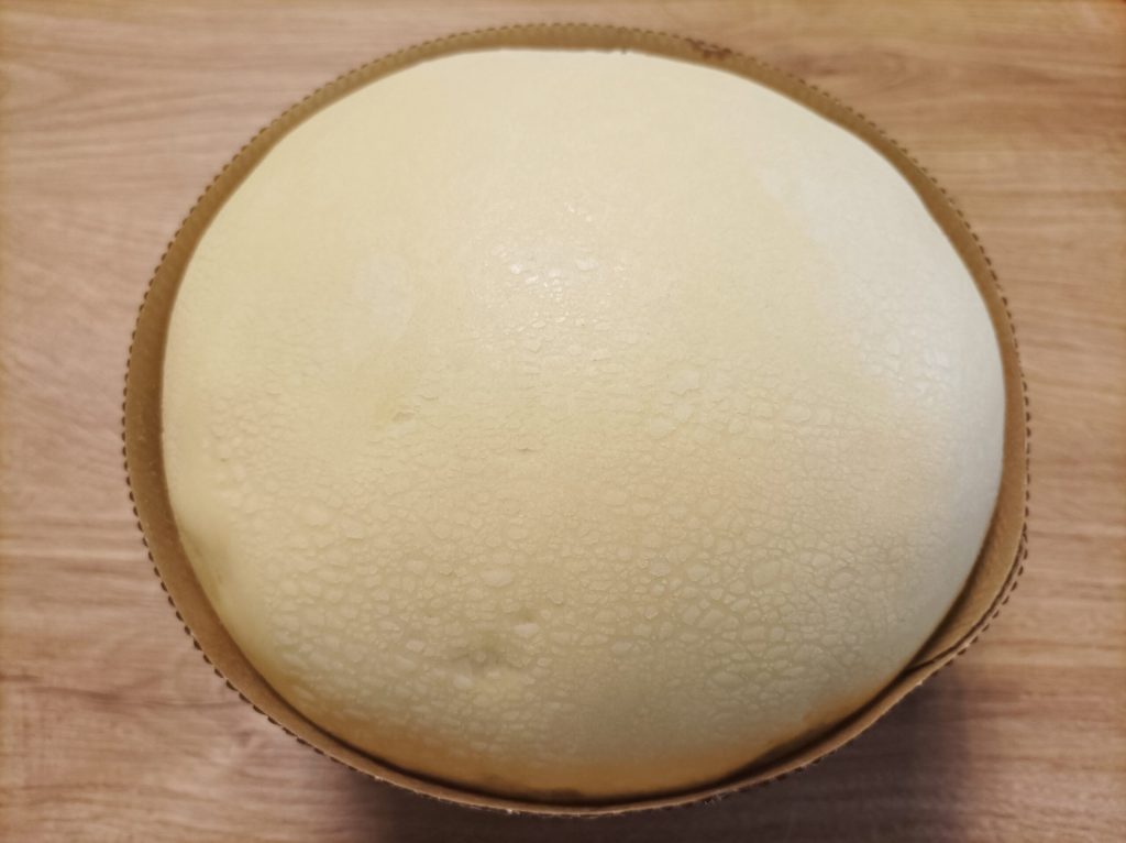 La pâte est prête, posez-la sur un plan de travail et donnez-lui un peu de force, avec les mains faites des mouvements comme si vous vouliez « caresser » et ramener vers vous la pâte, puis arrondissez-la, mettez-la dans un récipient, couvrez-la avec du film alimentaire et laissez lever jusqu’à ce qu’elle double de volume (cela peut prendre environ 1 heure et demie).