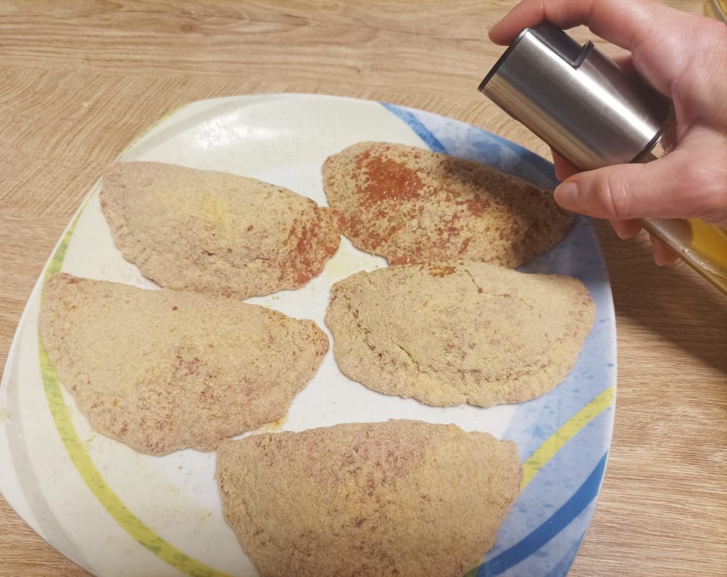 Une fois que vous les avez tous garnis, assaisonnez-les avec de la chapelure, du sel, du poivre et un peu de curcuma (si vous l’appréciez).