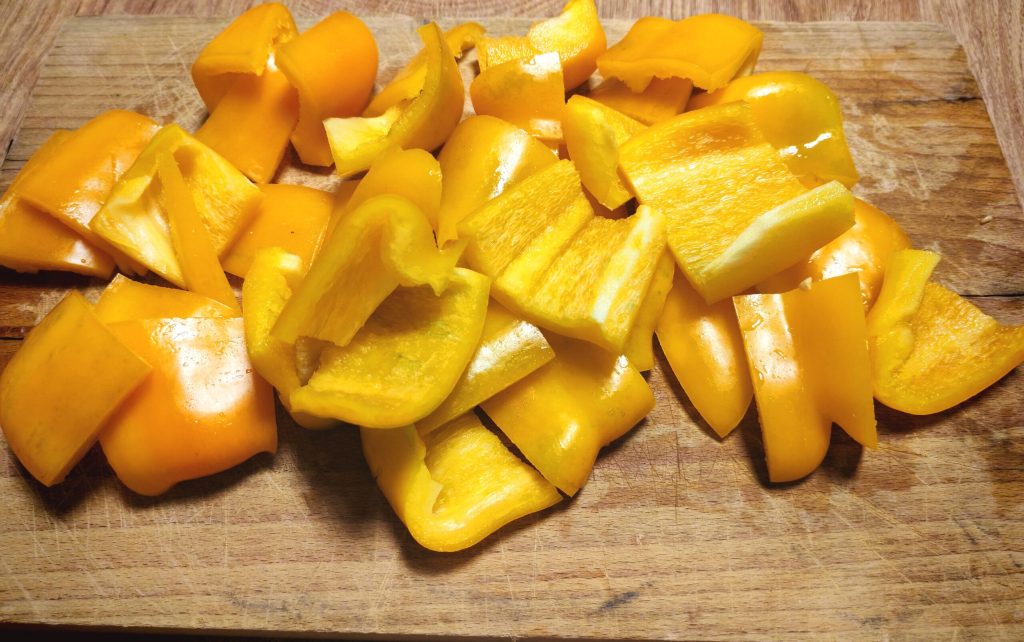 Commencez par laver et couper les poivrons en morceaux pas trop petits.