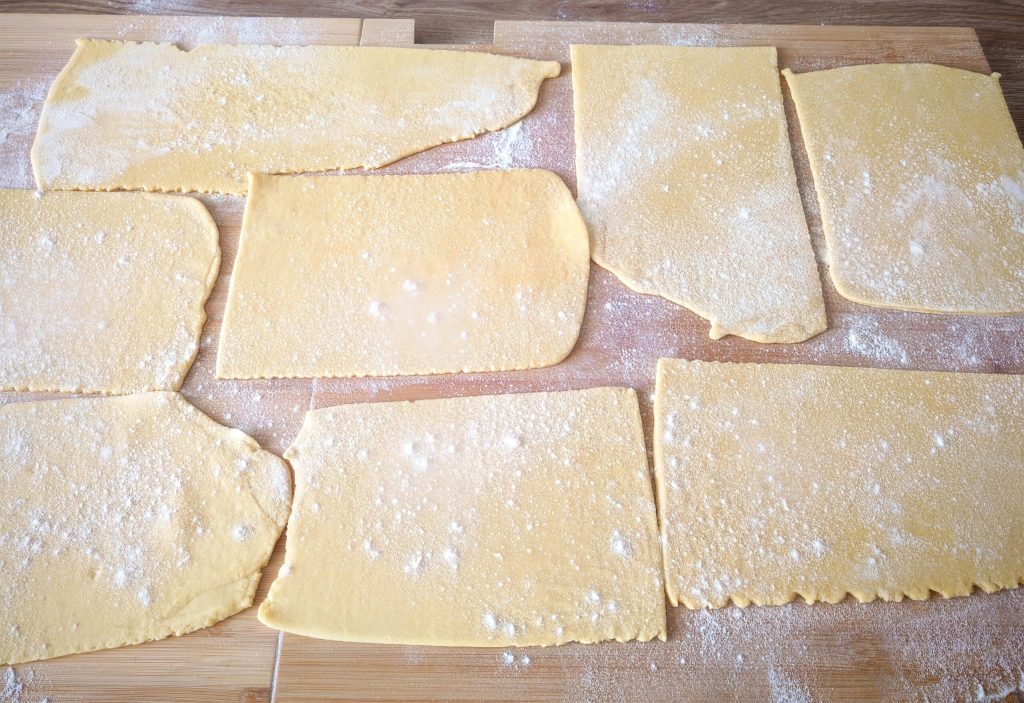 Au premier passage, étirez la pâte au réglage n°1, aidez-vous si besoin d’un peu de farine. Puis, au second passage, étirez-la au n°3. Si vous préférez, vous pouvez l’étirer encore plus fin, mais les quadrucci doivent rester légèrement plus épais.