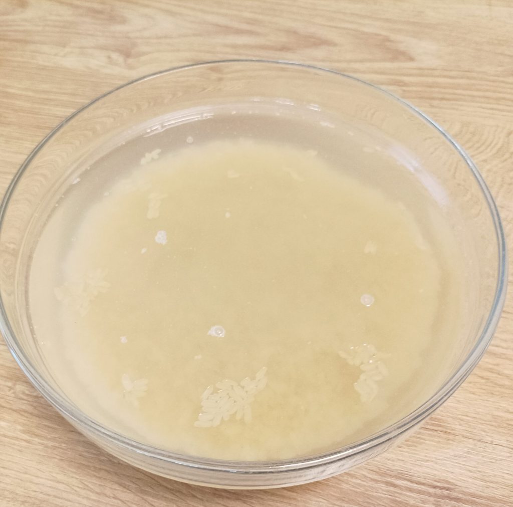 Pour commencer, mettez le riz dans un récipient avec de l’eau.
