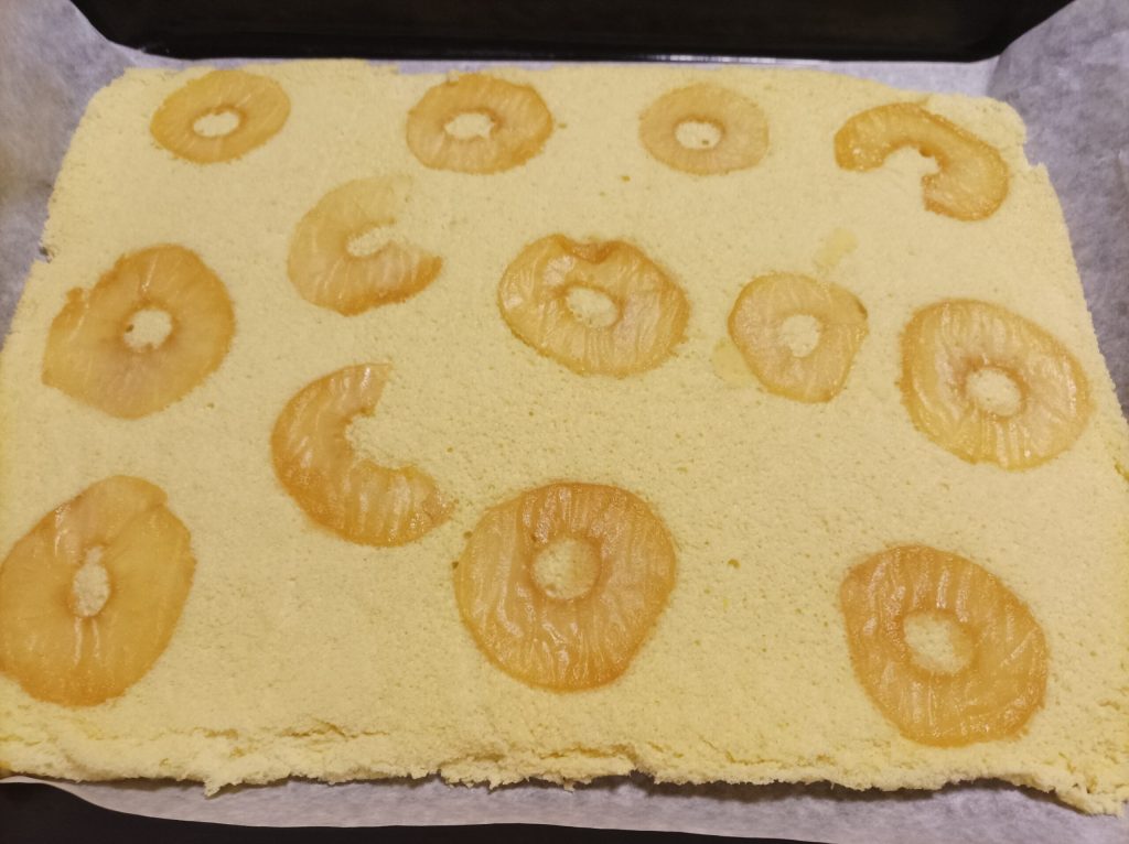 À la fin de la cuisson, sortez-le du four, couvrez-le de papier cuisson et retournez-le en retirant doucement le papier cuisson qui était à la base pendant la cuisson. Ensuite, mettez encore une feuille de papier cuisson dessus, donc sur la partie avec les pommes, et retournez-le encore.
