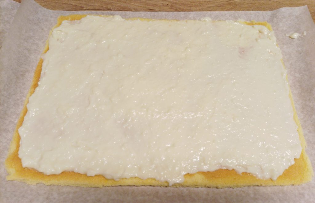 À ce stade, vous pouvez garnir le rouleau avec la crème désormais refroidie que vous aviez mise de côté, attention, il faut garnir la partie sans pommes.