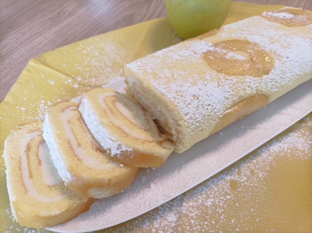 Le rouleau à la crème de lait et pomme caramélisée est prêt à être dégusté !!