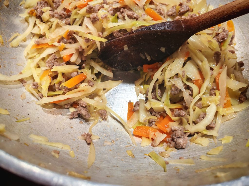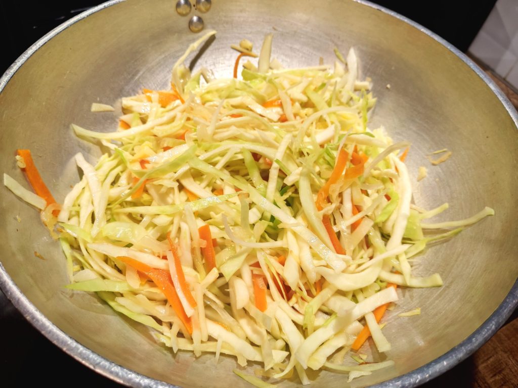 • Laissez cuire au maximum 15 minutes, juste le temps de cuire un peu la viande et le chou, mais les légumes doivent rester croquants.