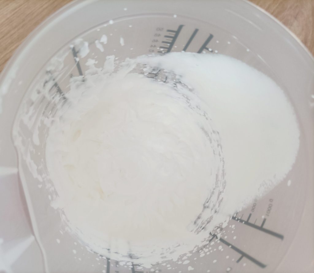 Enfin, ajoutez la crème en mélangeant toujours de bas en haut.