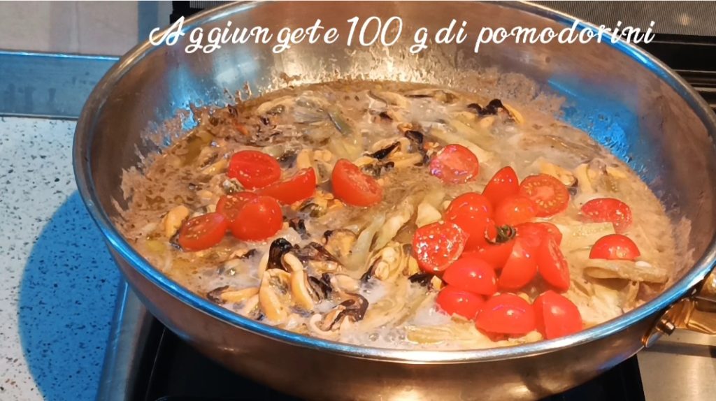 Retirez l’ail et ajoutez les tomates cerises et faites cuire 5 minutes.