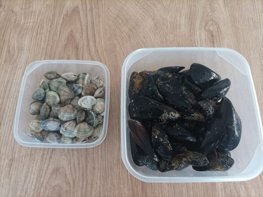 - 1 kg moules (poids avec coquille)