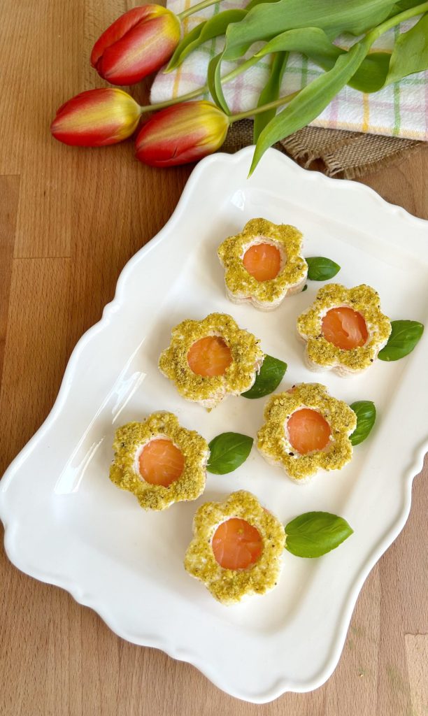 Fleurs apéritives au saumon fumé et pistache, une idée pour un apéritif printanier délicieux, parfait pour un déjeuner important, un pique-nique ou un apéritif informel !
