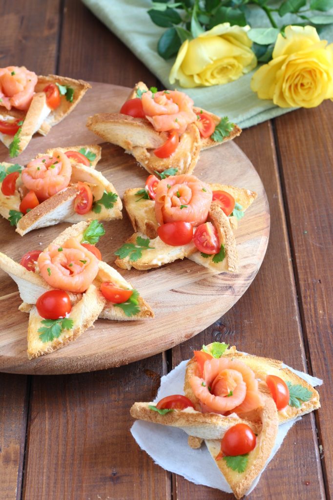 Le croisement de cette tranche de pain de mie m’a enchanté pendant plusieurs minutes, j’ai pensé à mille préparations avec mille garnitures, mais l’idée était d’en faire une entrée, parfaite pour les fêtes et je ne pouvais que choisir le saumon, le roi des ingrédients.