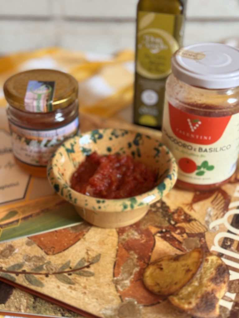 Cette sauce d’accompagnement est née d’une expérience : unir deux saveurs apparemment éloignées comme la tomate et le miel pour sublimer une focaccia rustique et croustillante, comme les Étrusques l’auraient mangée.