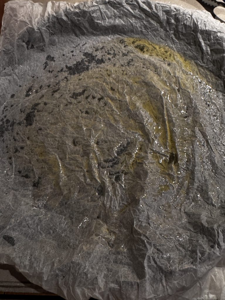 Allumez le four à 180 degrés statique. Prenez un moule de 32 cm de diamètre, déposez-y une feuille de papier sulfurisé humidifiée et essorée, et étalez un peu d’huile dessus.
