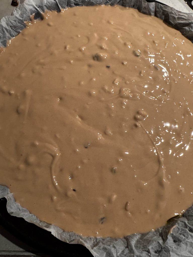 Bien sûr, rectangulaire, rond plus petit, plus grand, un moule à gâteau. Il suffit de garder à l’esprit que plus le moule sera petit, plus le castagnaccio sera haut et humide et nécessitera plus de temps pour cuire. En famille, on l’aime bien bas !