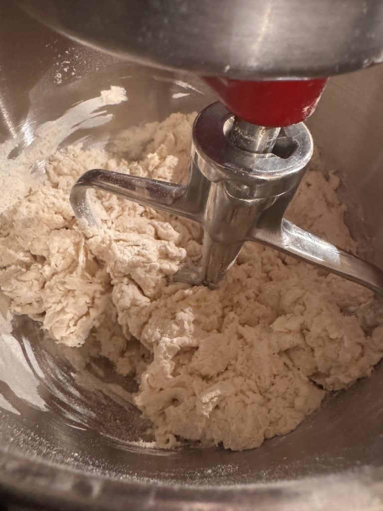 Ajouter l’eau petit à petit. Dès que c’est fini, remplacer la feuille par le crochet pour faire incorder la pâte.