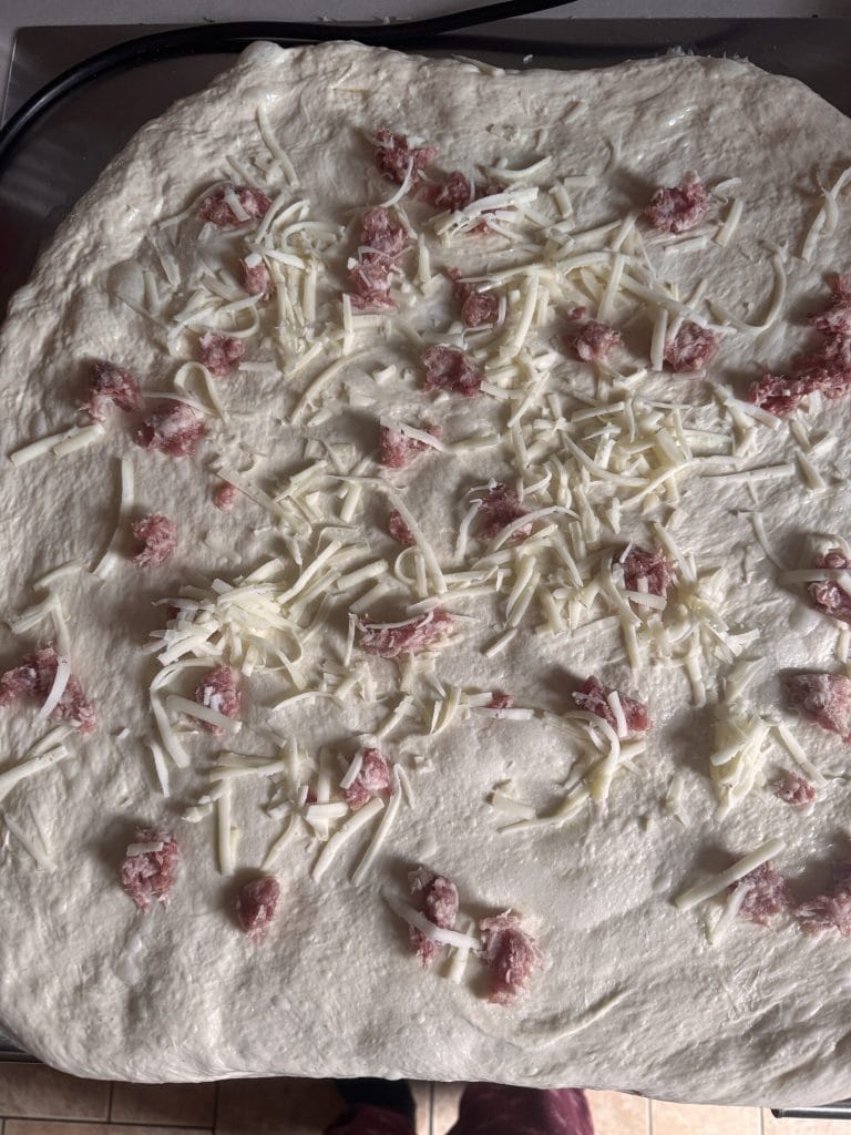 Emietter la saucisse fraîche et en répartir 100 g de manière uniforme.