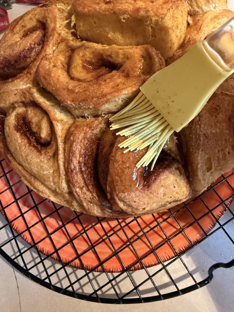 La citrouille dans la pâte apporte douceur et humidité naturelles, tandis que la cannelle ajoute le parfum typique des cinnamon roll. L’utilisation de l’huile de graines à la place du beurre rend le gâteau plus léger, mais tout aussi gourmand.
