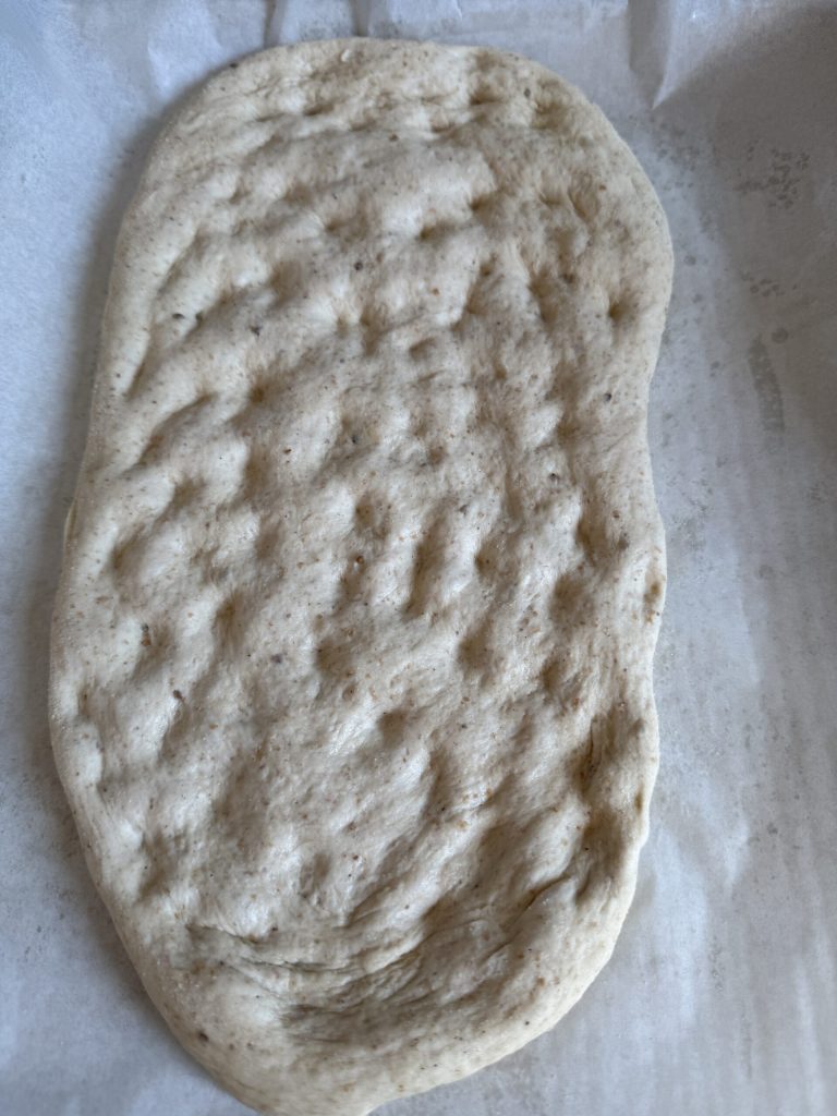 La Lagana est un pain fin, caractérisé par les empreintes typiques créées par la pression des doigts et par une généreuse couverture de graines de sésame qui, à la cuisson, dégagent un arôme grillé. Que ce soit pour respecter la tradition ou pour le plaisir d’expérimenter un nouveau levain, cette recette vous séduira par sa simplicité authentique.